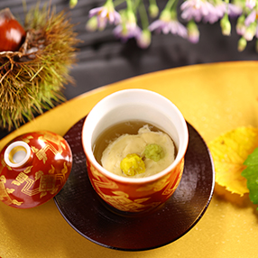 実りの秋、食の秋、五感で味わうひとときとなりますよう、旬の食材と器の取り合わせにて、季節の恵みと共にお楽しみ下さいませ。
