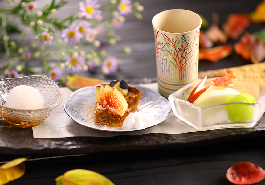 秋献立の最後を彩るのは当館の自家製デザートでございます。